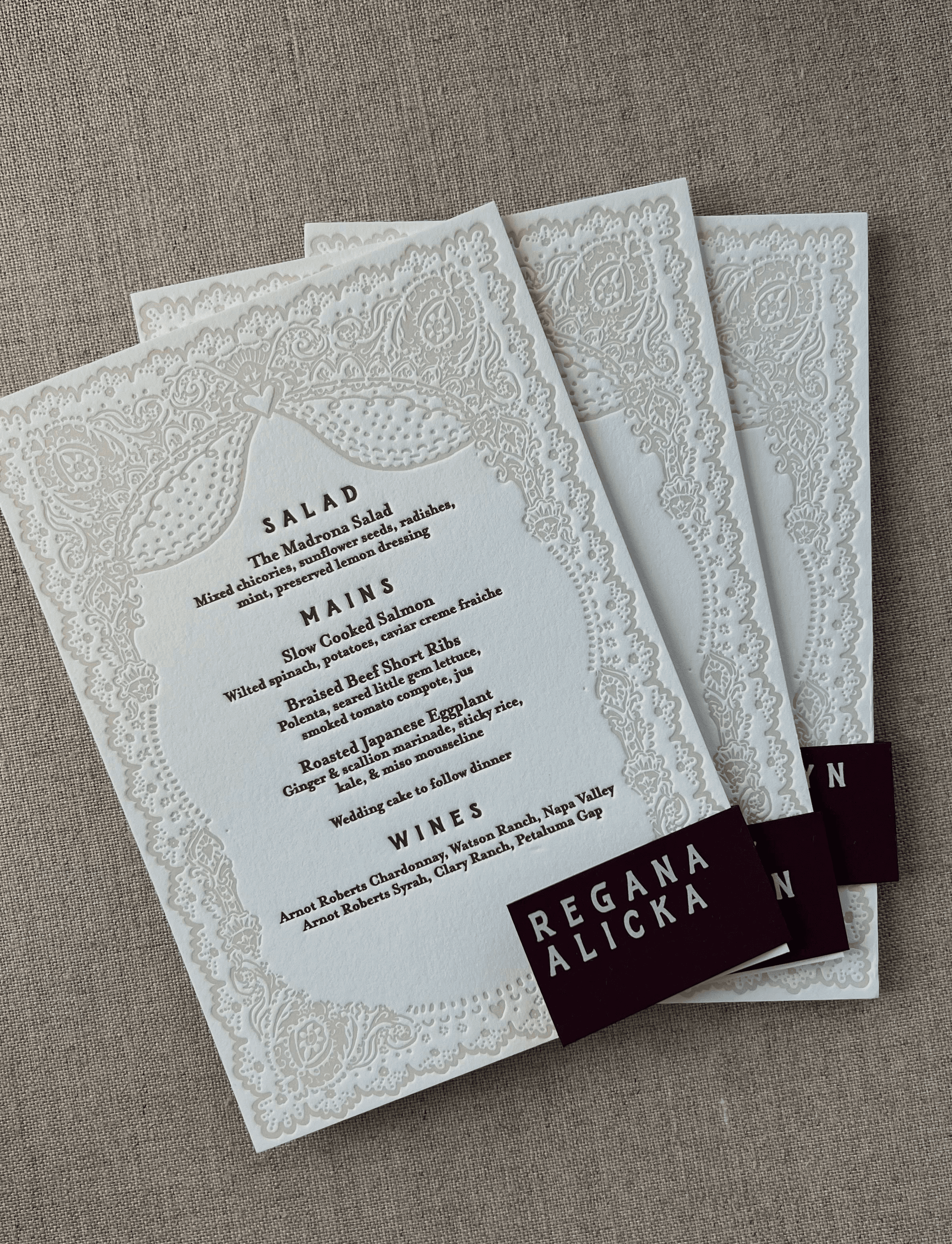 We love taking the designs from the invitations and carry it into the wedding day. To us, Day Of Papers are accessories for the wedding that also act as practical guides for the guests to have a smooth experience. We love working closely with planners to make sure we can support them with our work.